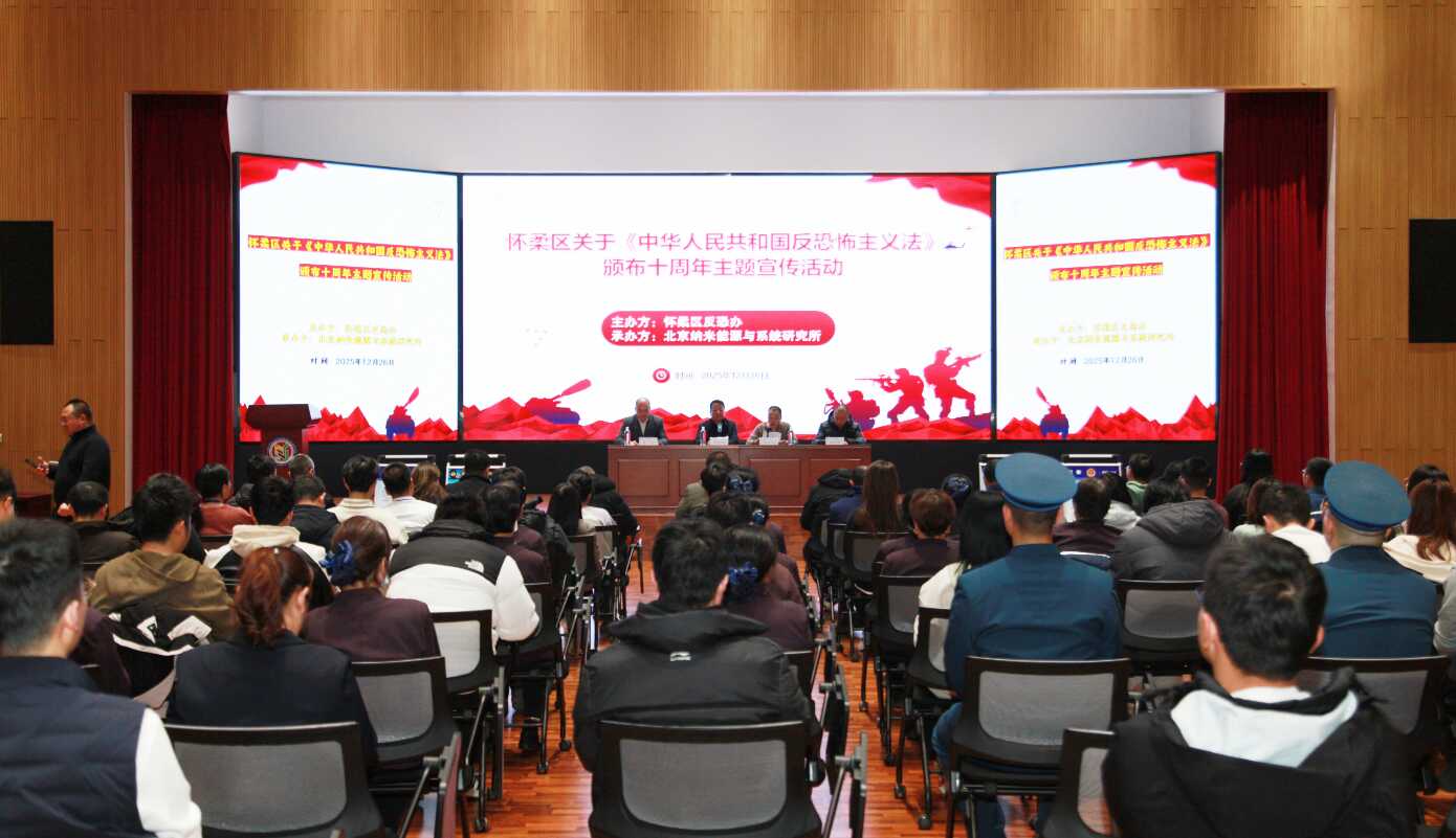 为深入贯彻总体国家安全观,有助于反恐怖法律法规深度落实,构筑巩固反恐人民防线,12月26日,怀柔区反恐办在北京纳米能源与bbin宝盈(中国)报告厅,召开了全区《中华人民共和国反恐怖主义法》(以下简称《反恐怖主义法》)颁布10周年主题教育宣传活动。